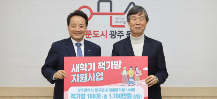 ■ 사업개요 ❍ 사 업 명 : 2026년 새학기 책가방 지원사업 ❍ 지원예산 : 17,000,000원(보성장학재단 장학기금) ❍ 선발대상 : 광주광역시 동구지역 저소득계층 학생 중 초등학교 6학년(총 100명 선정 및 동구청 추천) ❍ 선발절차 : 1) 해당 기관에…